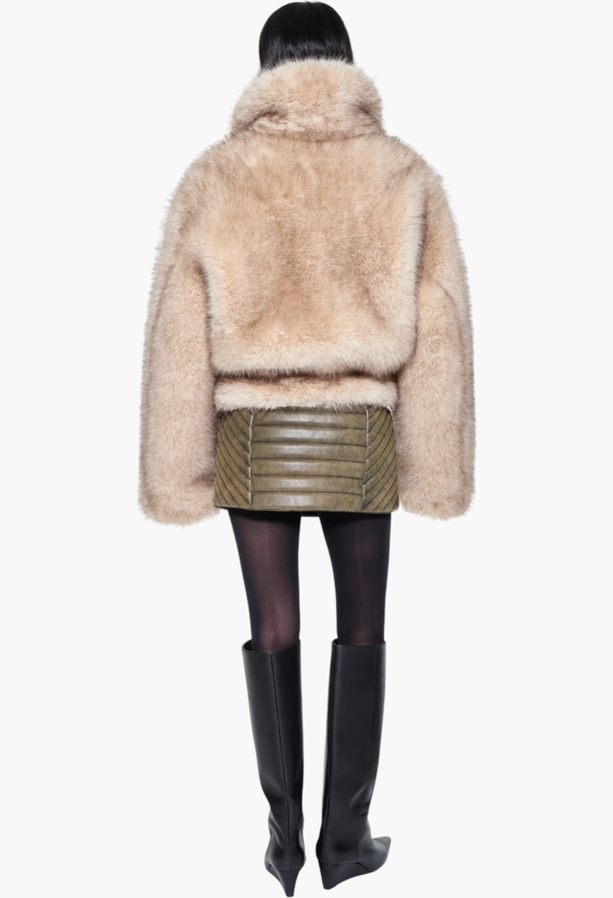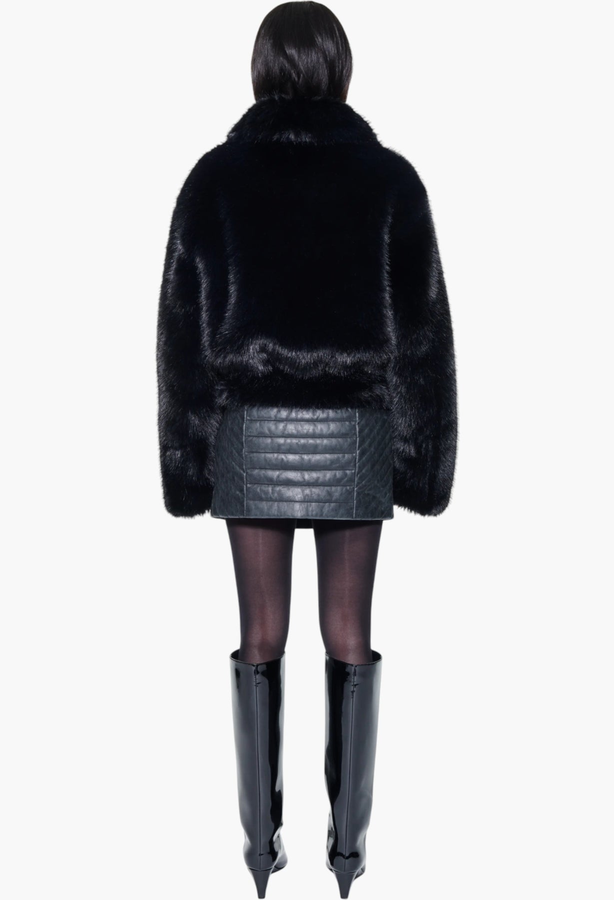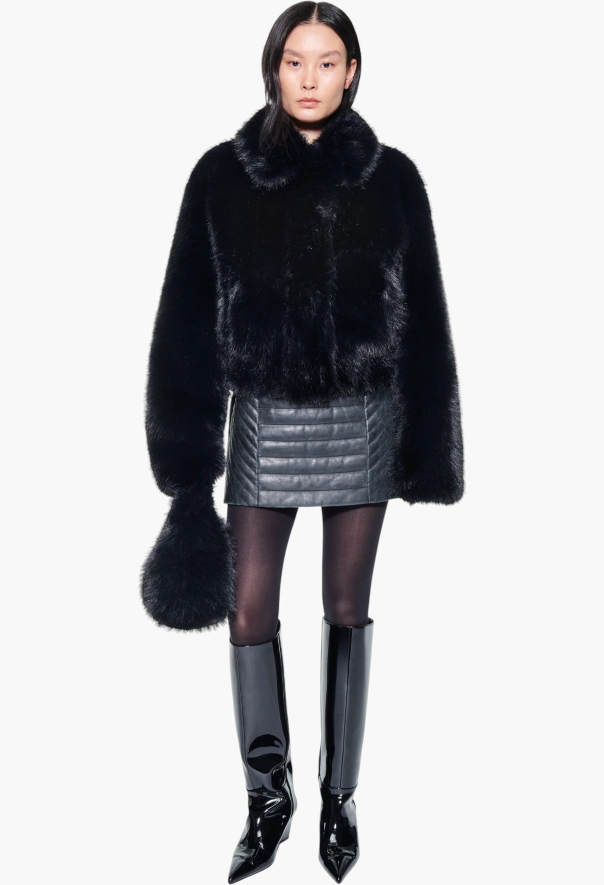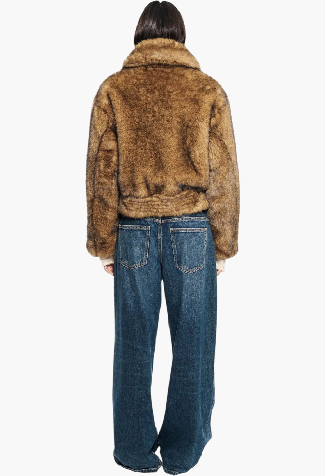 Kristy is a cropped faux shearling jacket designed for an oversized fit. This piece is enhanced by drop shoulders and a double-breasted front.
