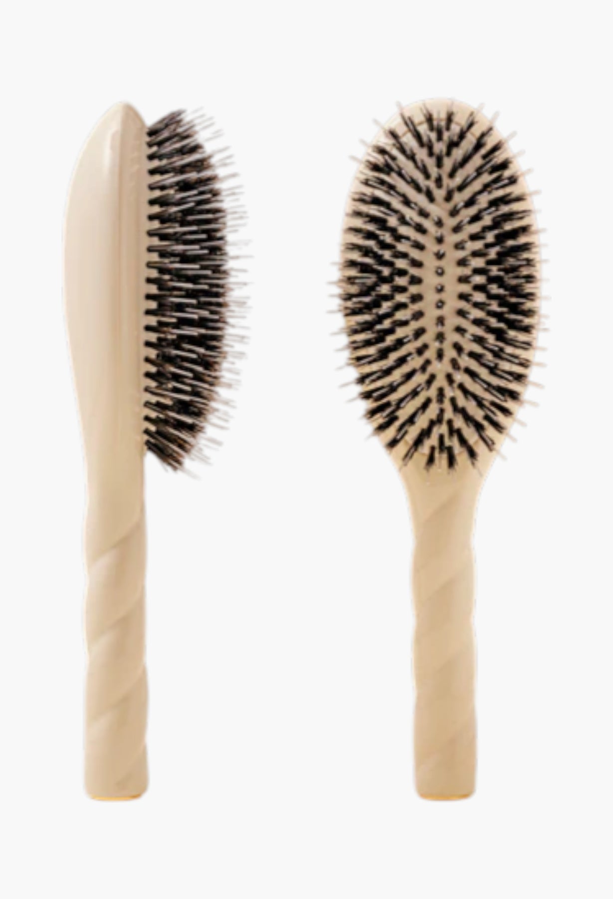 To add shine to your hair, boar bristles naturally moisturize your hair from roots to ends while tightening the scales thanks to their keratin content. The boar bristles in the hairbrush therefore provide complete care for your hair.