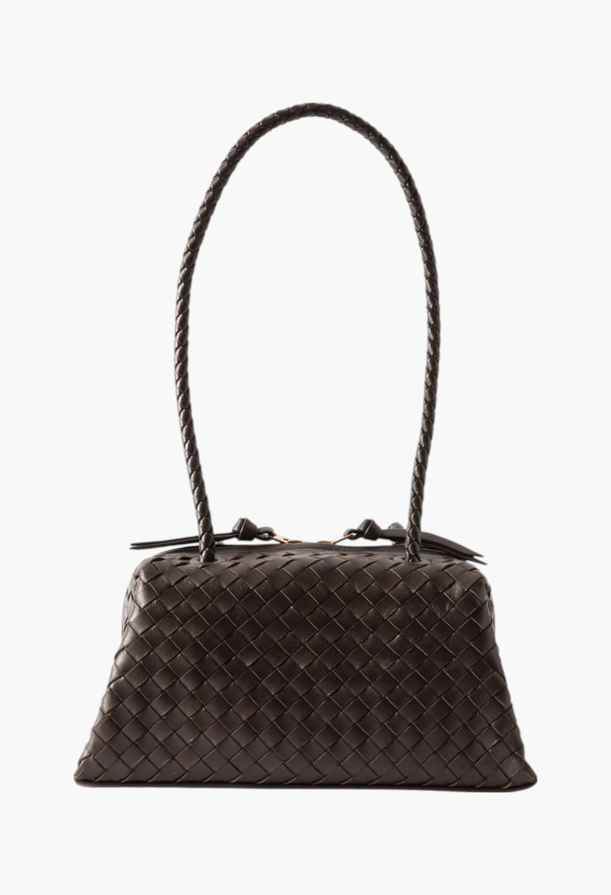 Brown - Tokyo Intrecciato Leather Shoulder Bag - GLAM MODA