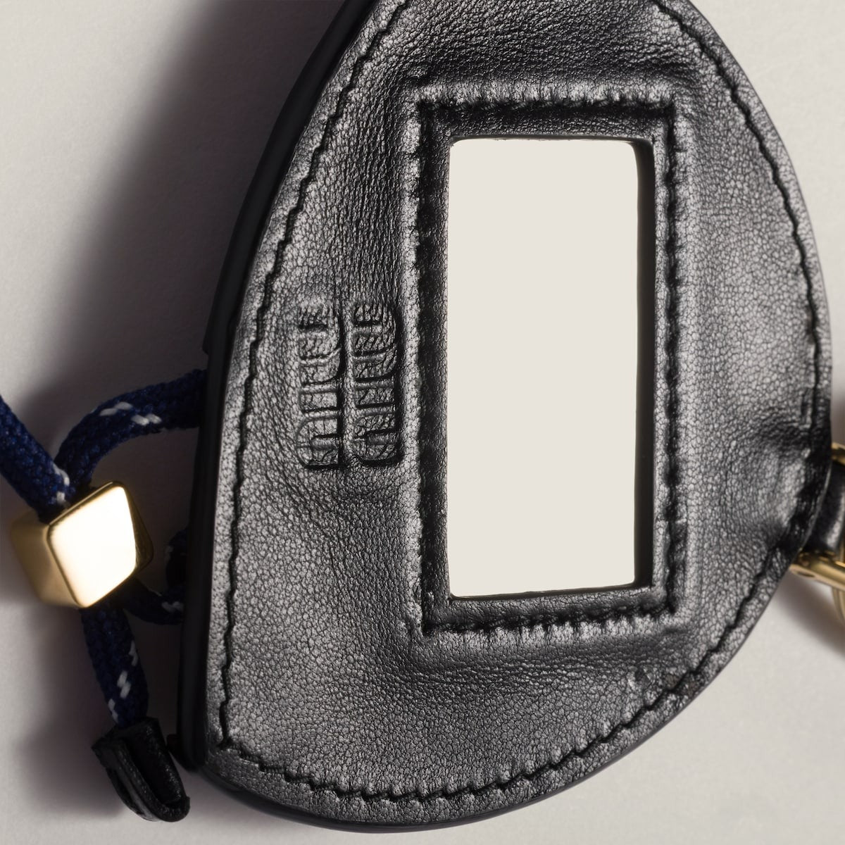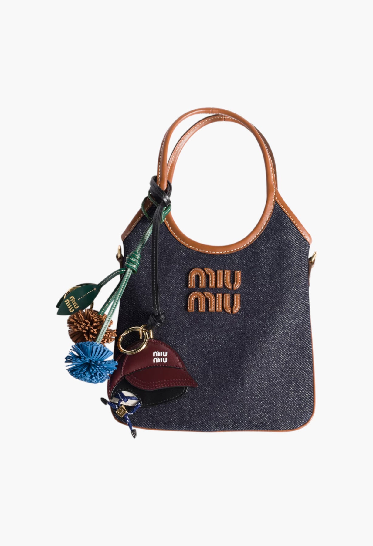 Distinctive elements of the Miu Miu wardrobe are transformed into precious accessories to be paired with bags, creating lively and personal combinations. This leather trick inspired by the iconic baseball cap adds a unique detail to the design of the bags.