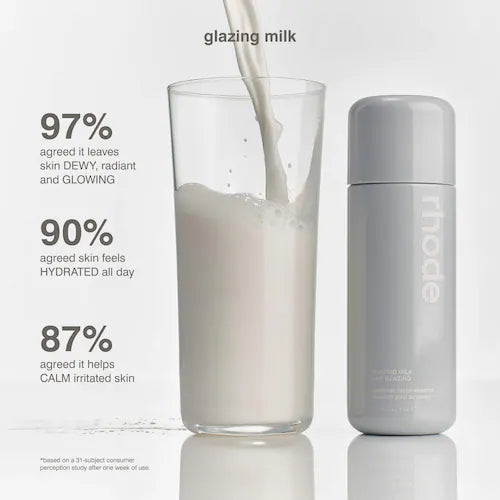 -Apply a generous amount of Glazing Milk to hands and gently press onto face, neck, and décolleté. Shake before use.