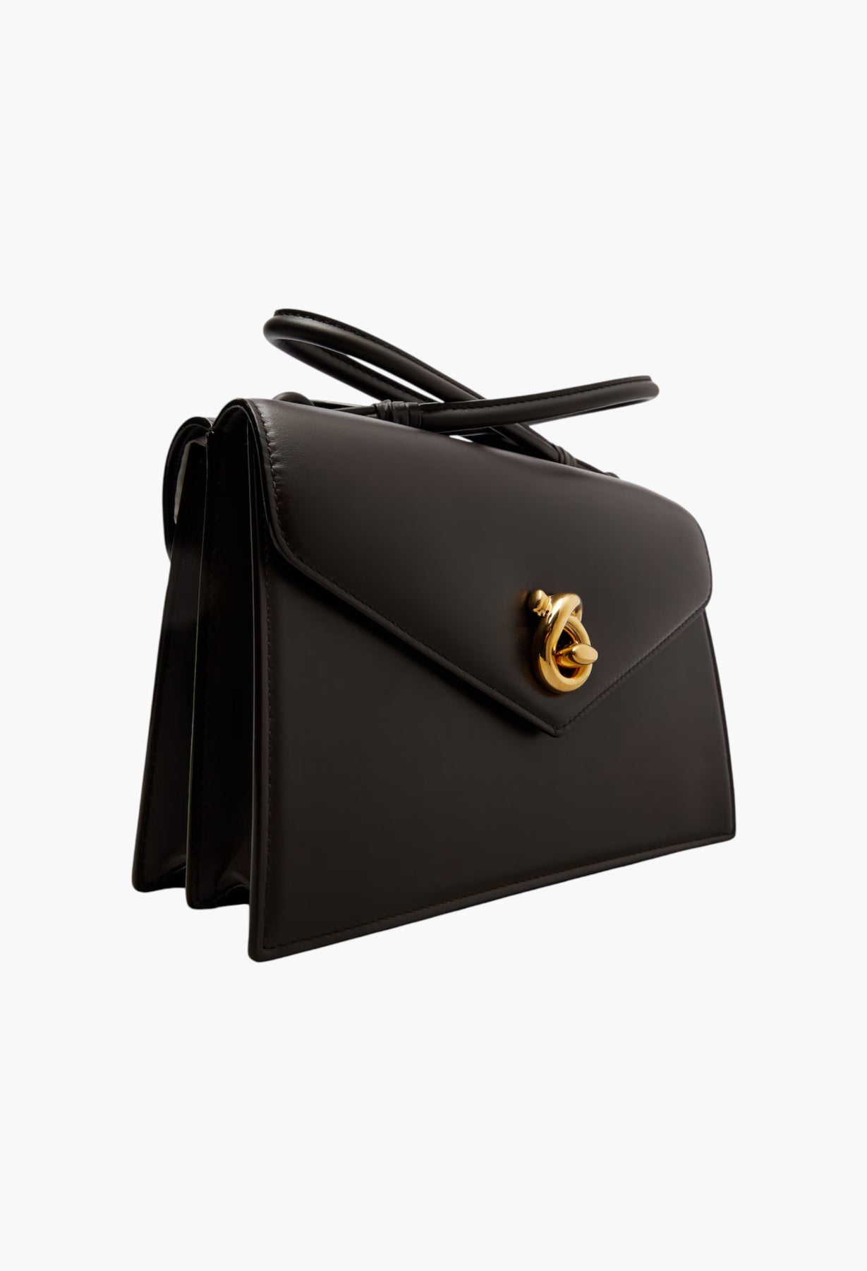 Sophisticated and meticulously crafted, this iteration of the Knot Lock crossbody bag from Bottega Veneta is made from smooth leather. True to its name, this refined style features a gold-toned version of the brand's iconic motif.