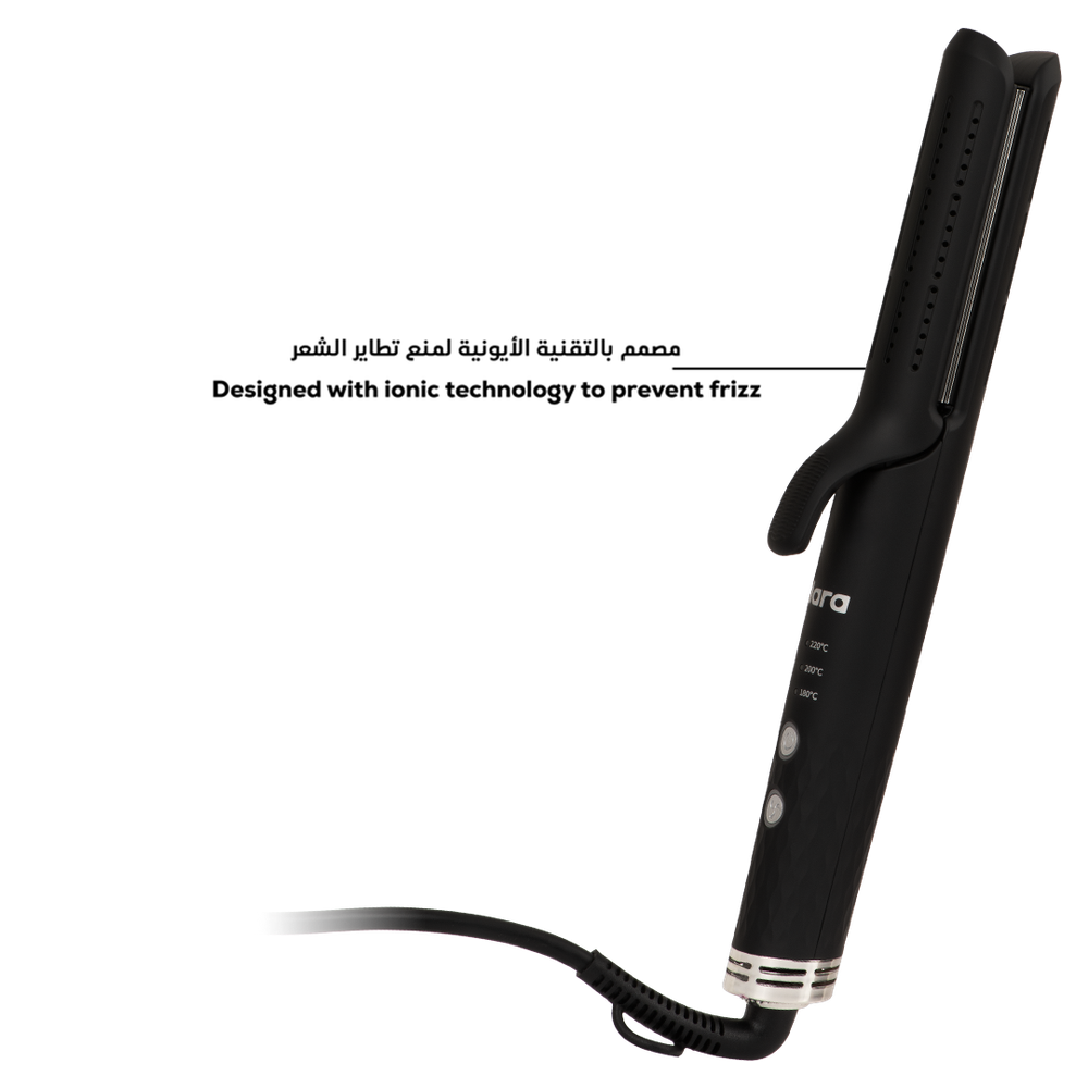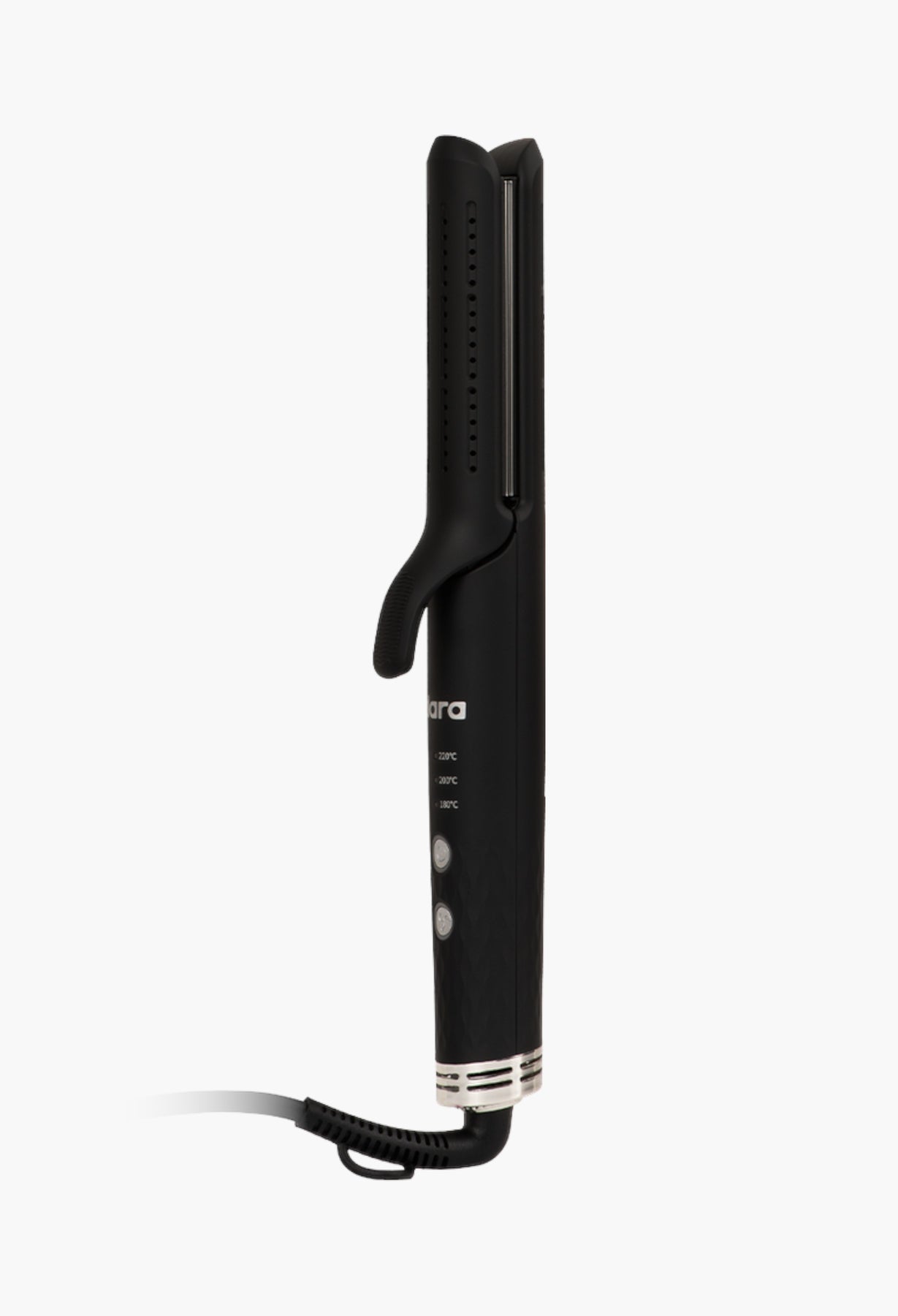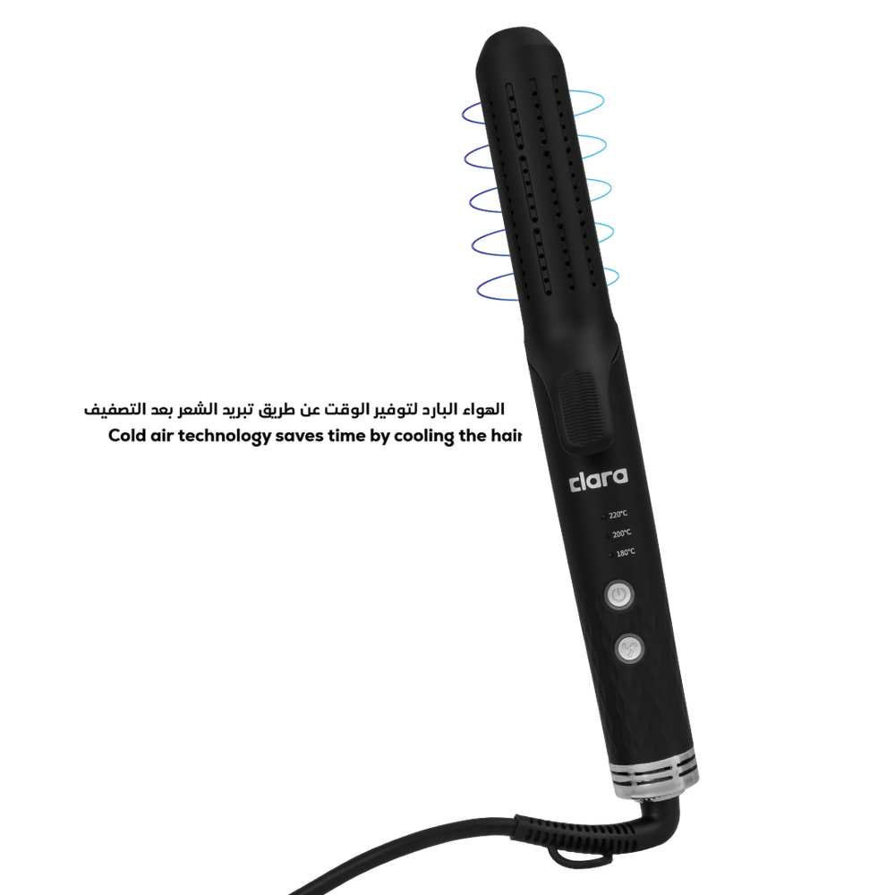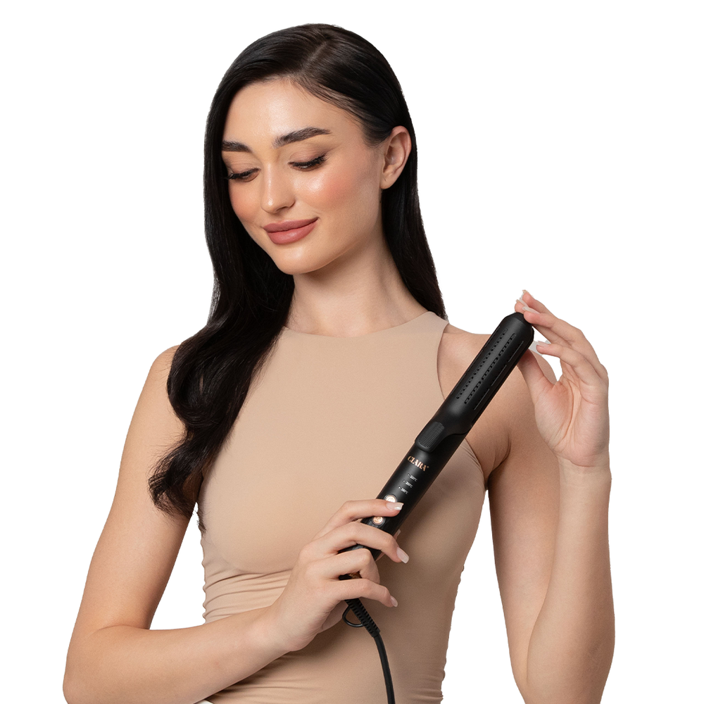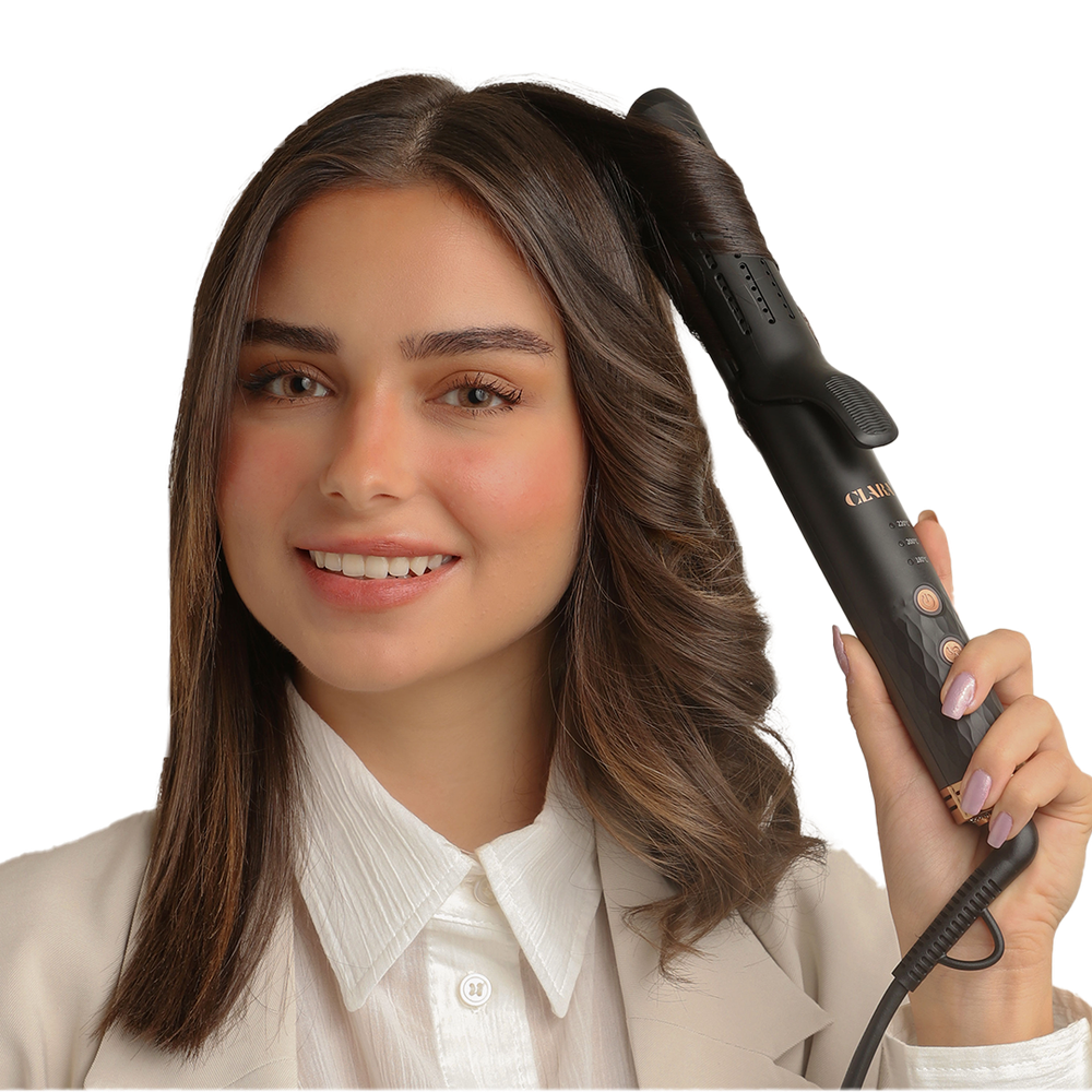 It gives you smooth, shiny hair in minutes, providing more than one result: straightening and curling hair with minimal damage. It also features a cool air feature to speed up the styling process and eliminate flyaways with negative ions.