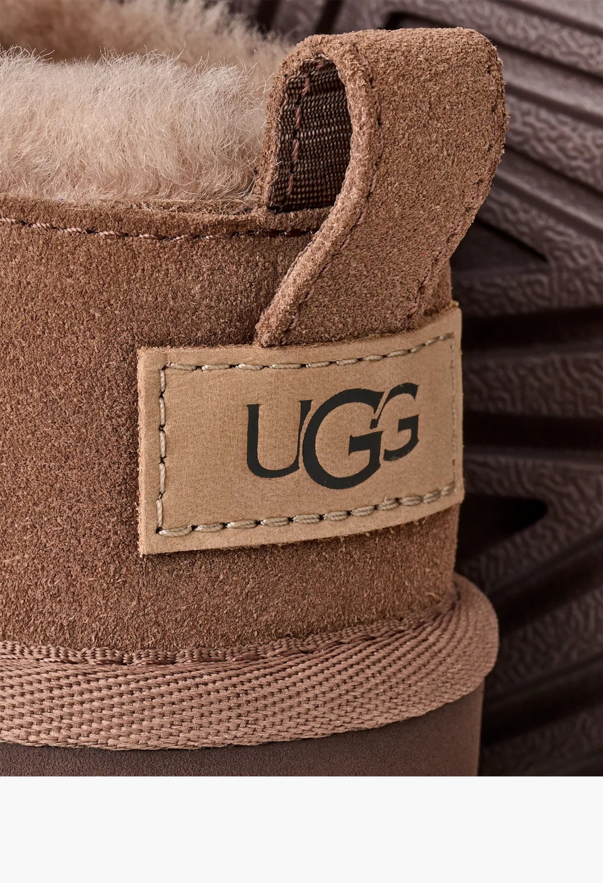 - Woven label with The UGG® Logo on insole, The UGG® Logo embossed leather heel label