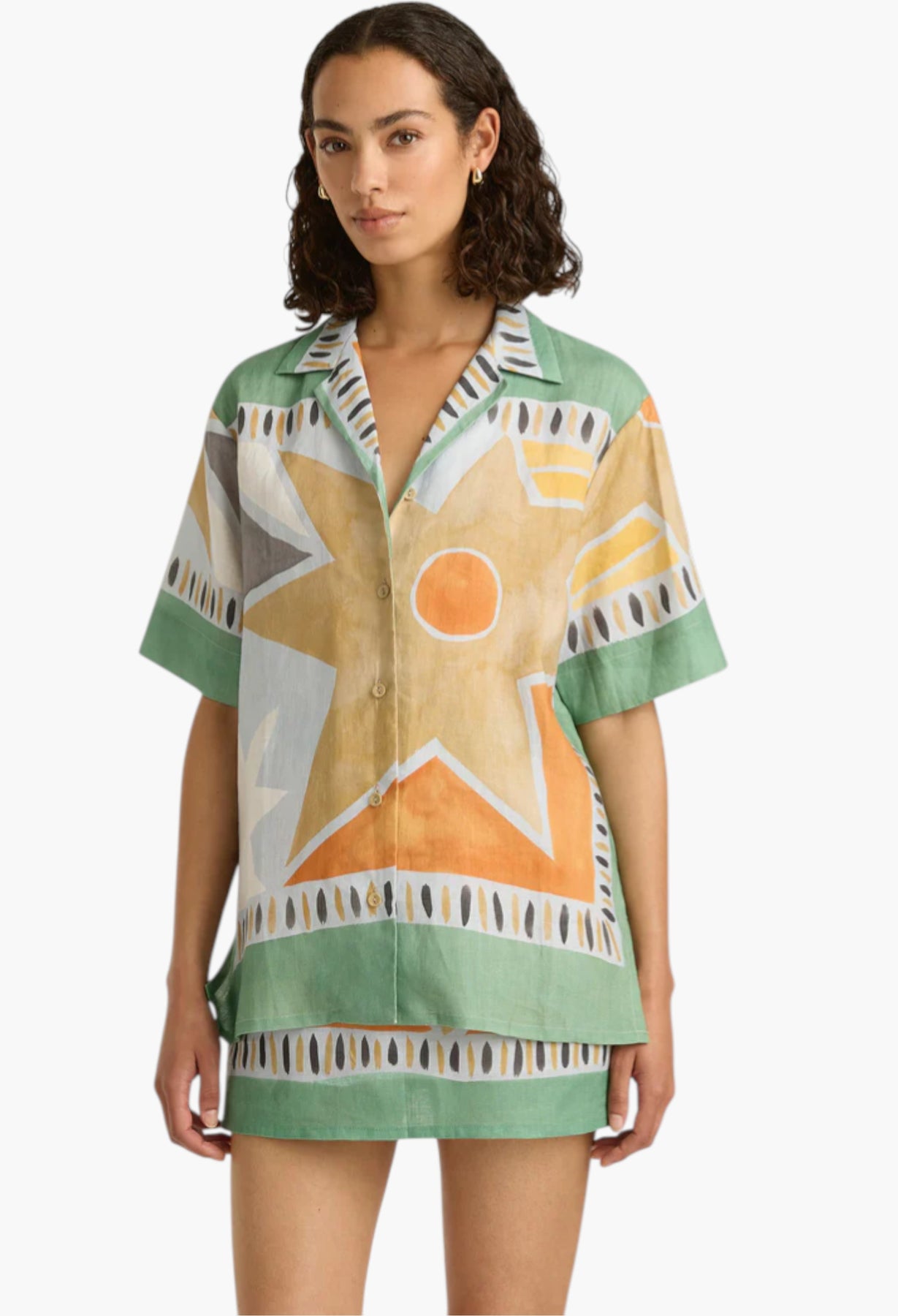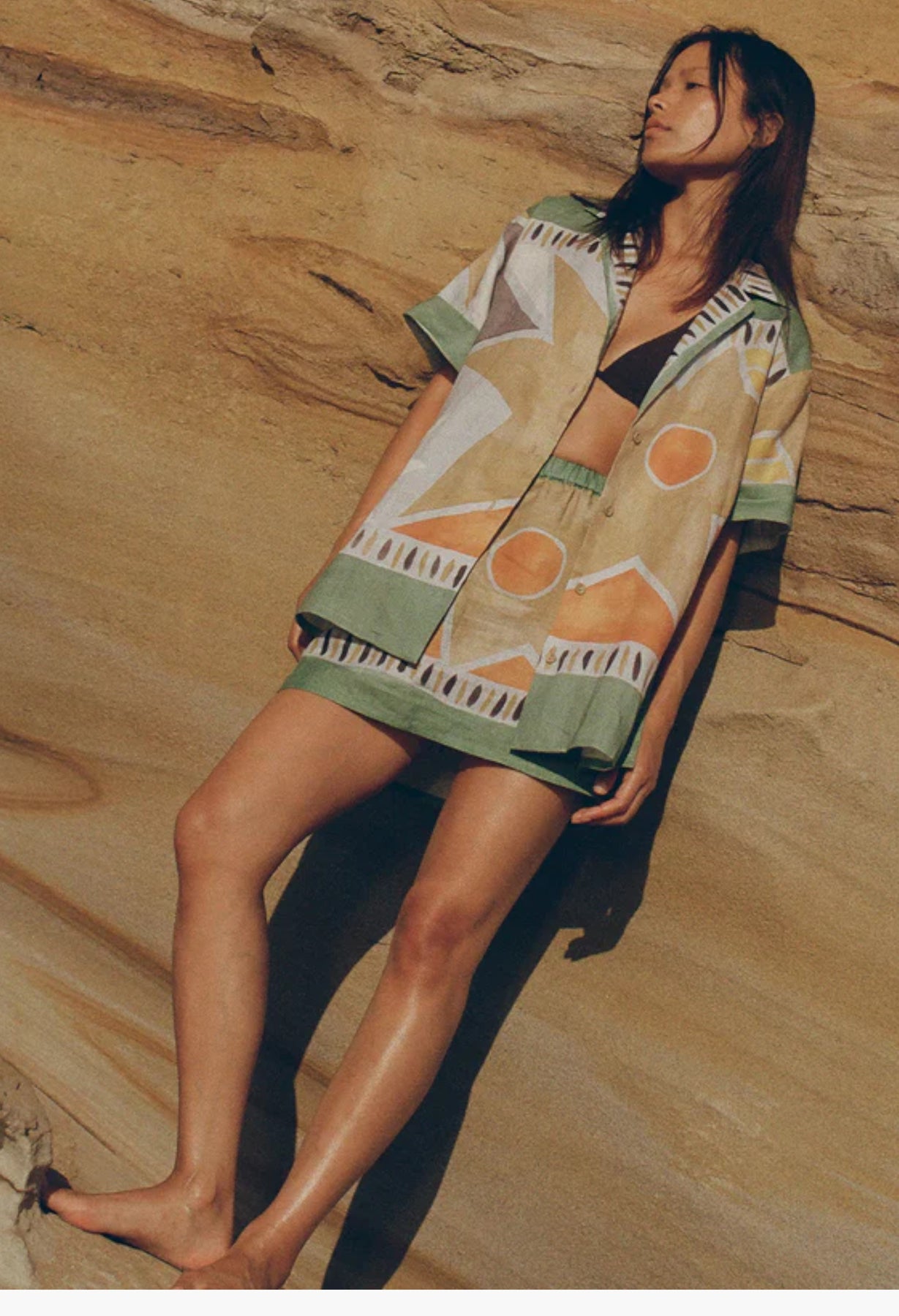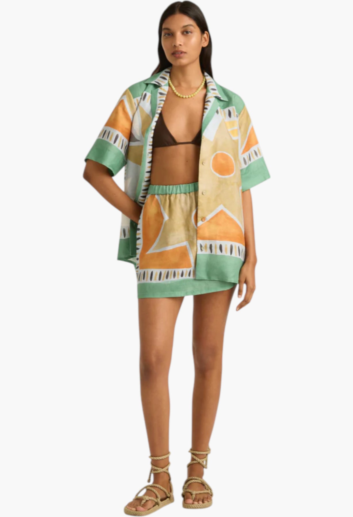 The Connie Mini Skirt features an elastic waistband and side seam pockets, placement printed with our hand-painted 'ASTER' artwork. This comfortable staple is designed to be worn with your favourite t-shirt or perfectly paired with the matching Margot Shirt.