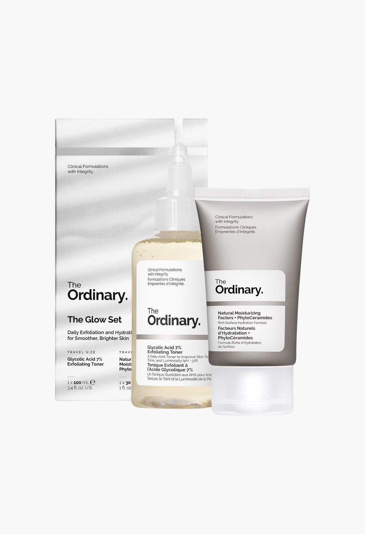 The Glow Set offers a complementary duo of formulations that provides daily exfoliation, supported by rich, replenishing hydration, for skin that feels smoother and looks more radiant.