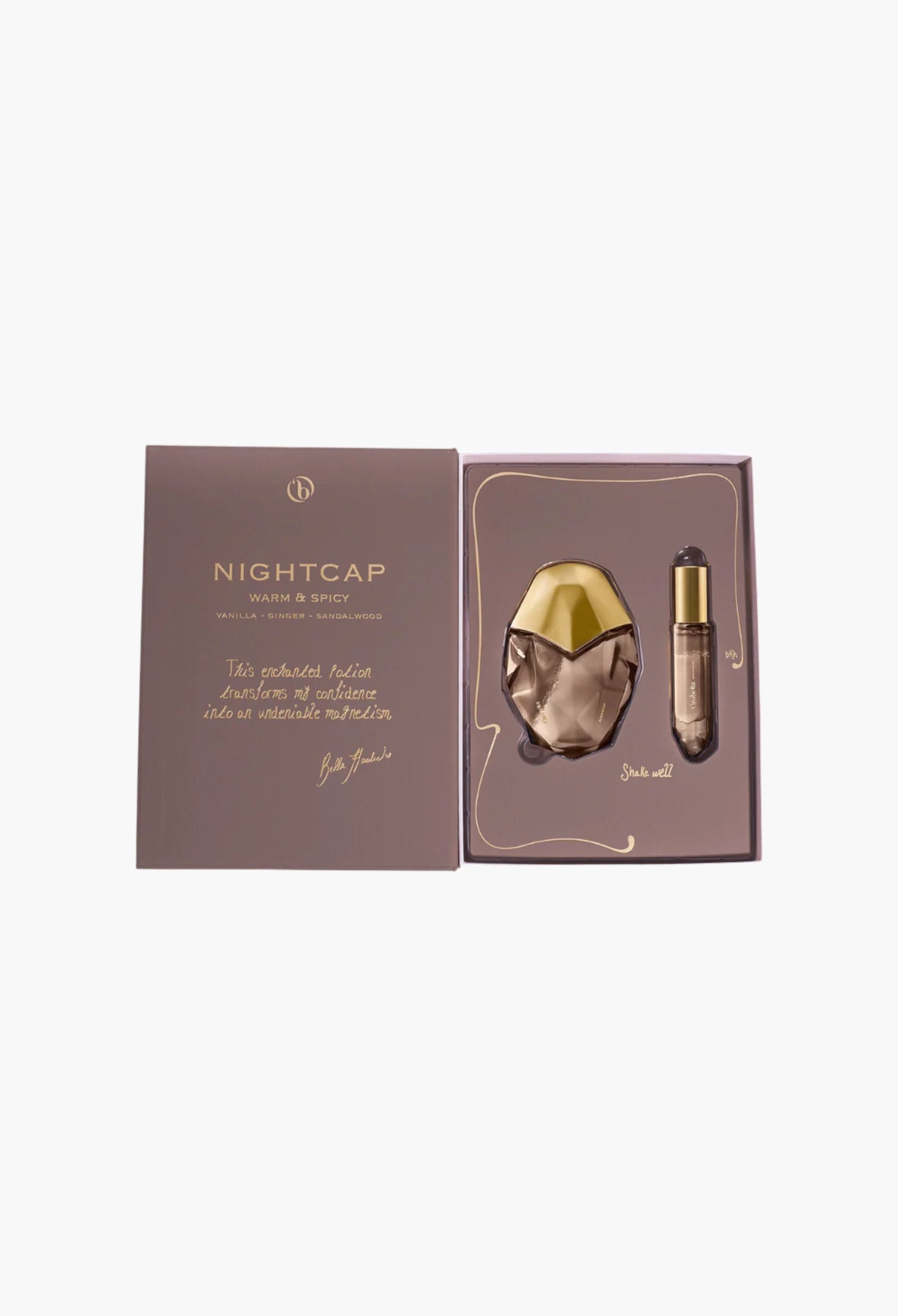 This set features our NIGHTCAP skin parfum in both the 50mL and travel-friendly 10mL sizes, ideal for gifting or keeping. NIGHTCAP is a delicious gourmand of cozy vanilla and rich woods, wrapped in warmth and depth. Sparkling ginger and cardamom add a layered twist to this warm & spicy aphrodisiac.