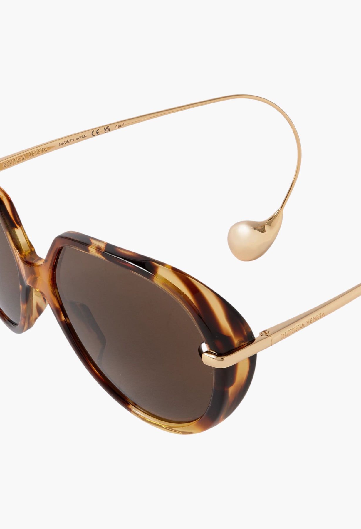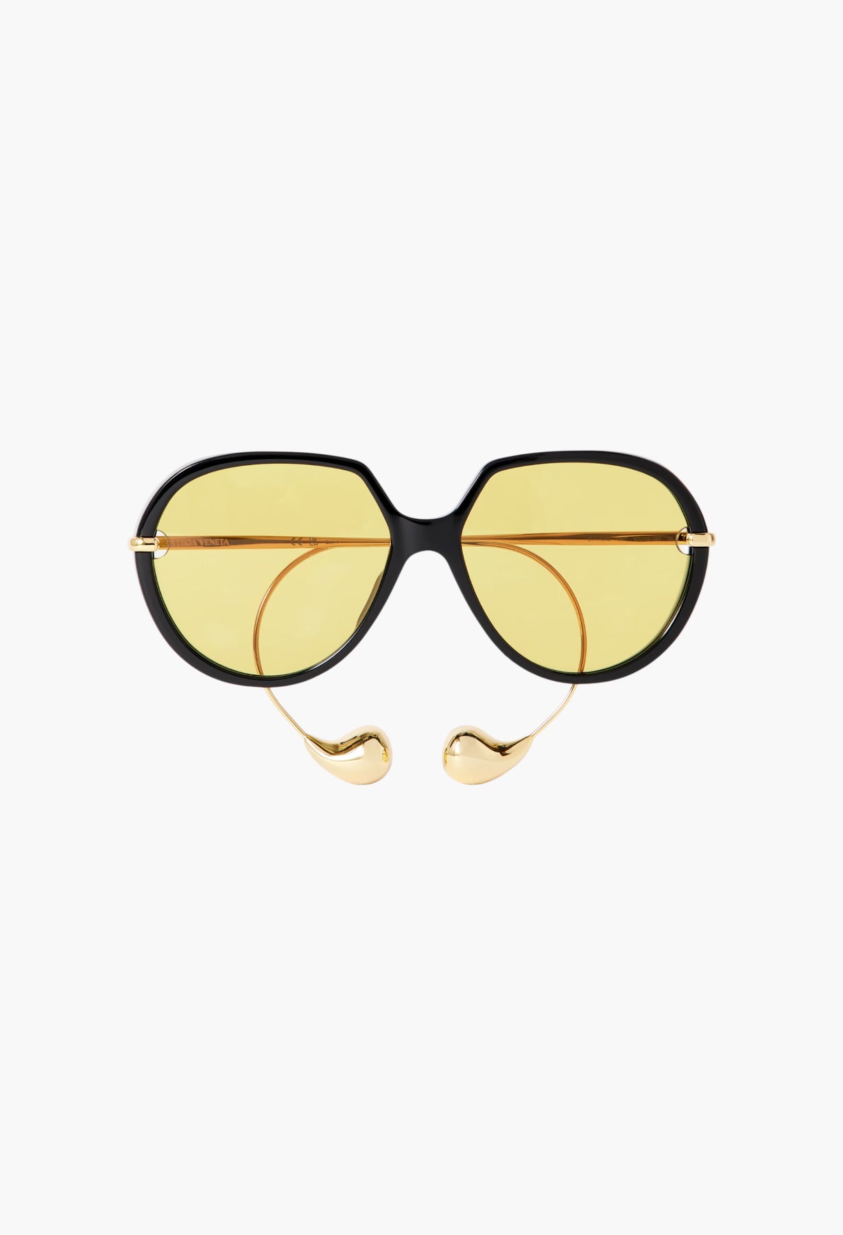 Bottega Veneta Eyewear's 'Drop' sunglasses have curved gold-tone arms, which pierce the lenses and wrap around the ear, ending in sculptural teardrops. They've been crafted in Italy from black acetate and have oversized round frames with a distinctly '70s feel. Keep yours protected in the accompanying case.