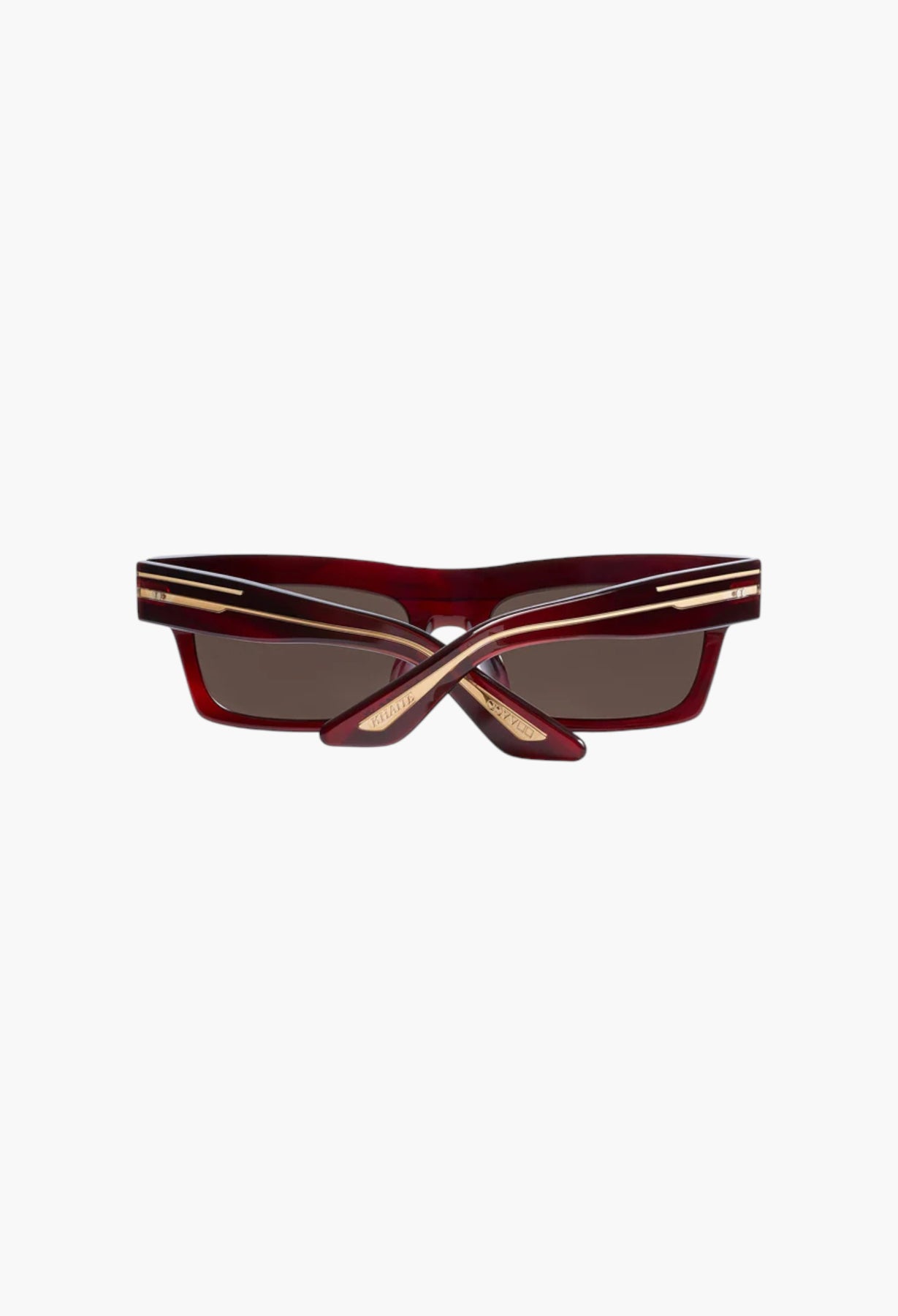 In collaboration with Oliver Peoples Sunglasses, the vision of KHAITE extends into elevated eyewear craftsmanship. These Oliver Peoples Sunglasses are handcrafted in Italy and draw inspiration from the dynamic glamour of the 1980s. Boldly formed, the striking silhouette gains dimension from its distinctive stepped topline. Along the temples, a first-of-its-kind double embedding process reveals custom corewire inspired by the iconic hardware of KHAITE handbags. Finished with functional pins and alternating, hand-inlaid logo plaques at the temple tips, these Oliver Peoples Sunglasses reflect refined design and innovation. Each pair of Oliver Peoples Sunglasses is completed with a signature lipstick red case and a drawstring pouch that also doubles as a lens cloth.