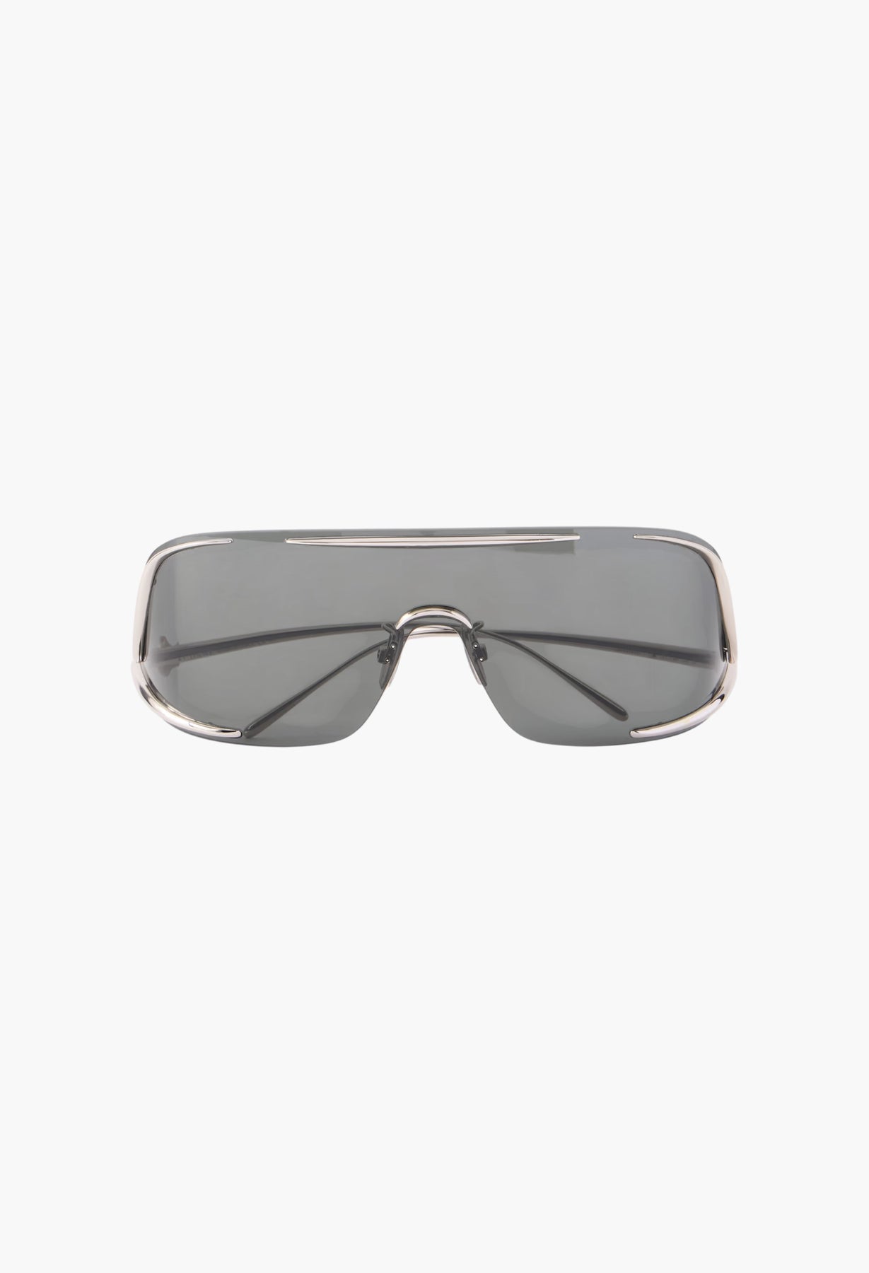 LOEWE Eyewear decided to switch things up when it designed these sunglasses – the arms are at the bottom of the frames, rather than the top. They've been crafted in Italy from silver-tone metal and have futuristic wrap-around lenses that are reinforced at the nose, bridge and temples.