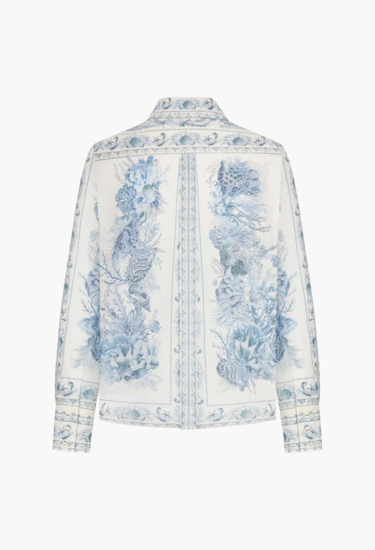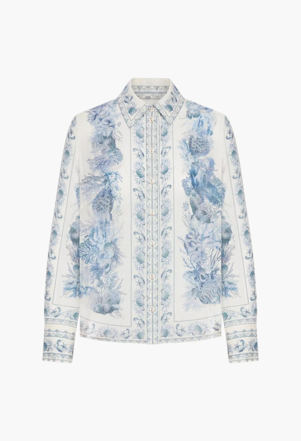 The Wanderlust cotton shirt by Zimmermann embodies the essence of luxury and sophistication within the women's shirt category. This exquisite piece features a delicate design with unique details that elevate your wardrobe. Perfect for a chic brunch or a day at the office, it can be effortlessly paired with tailored trousers or a flowing skirt for a polished look. The shirt's elegant silhouette and refined finish make it a versatile staple, ideal for both casual and formal occasions. Embrace a sustainable lifestyle with this timeless addition, crafted with care to ensure longevity and style.