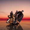 Frank Gehry, one of the greatest architects of all time, designs his first perfume bottle. He began with Marc Newson’s original bottle, stretching the lines into curves. From his sculptural flourish emerges a transparent veil that appears to float in the air. The bottle is topped with a precious hand-polished metal cap like the splash of an airy, imaginary flower.